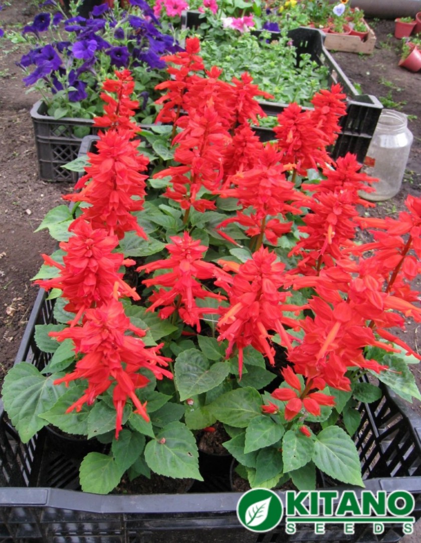Сальвия Хитоми: ярко-красные цветы на компактных растениях.